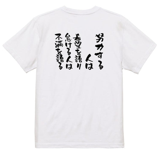 ポジティブ系半袖Tシャツ【努力する人は希望を語り、怠ける人は不満を語る】おもしろTシャツ ネタTシャツ