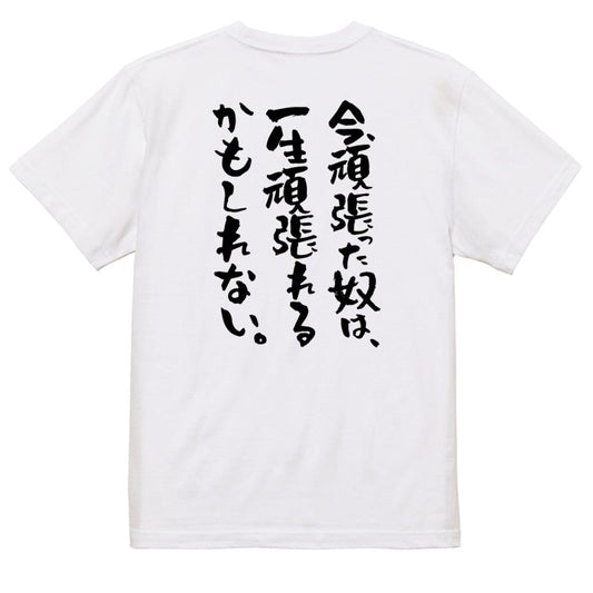 ポジティブ系半袖Tシャツ【今、頑張った奴は、一生頑張れるかもしれない。】おもしろTシャツ ネタTシャツ