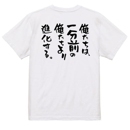 ポジティブ系半袖Tシャツ【俺たちは、一分前の俺たちより進化する。】おもしろTシャツ ネタTシャツ