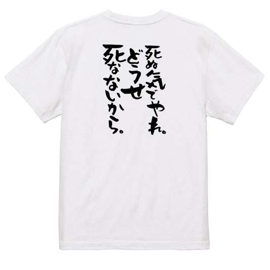 ポジティブ系半袖Tシャツ【死ぬ気でやれ。どうせ死なないから。】おもしろTシャツ ネタTシャツ