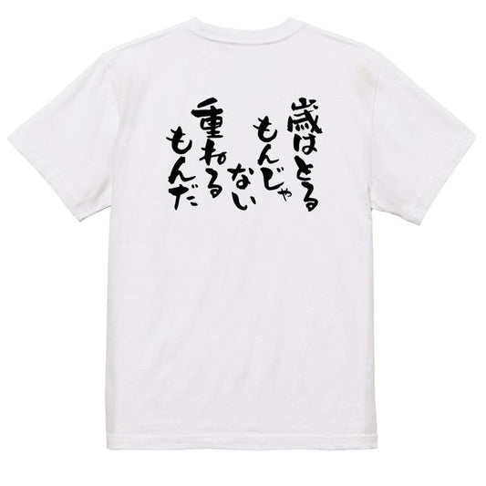 ポジティブ系半袖Tシャツ【歳はとるもんじゃない重ねるもんだ】おもしろTシャツ ネタTシャツ