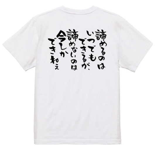 名言系半袖Tシャツ【諦めるのはいつでもできるが、諦めないのは今しかできねぇ】おもしろTシャツ ネタTシャツ