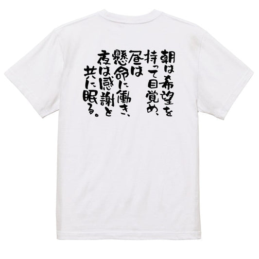 名言系半袖Tシャツ【朝は希望を持って目覚め、昼は懸命に働き、夜は感謝と共に眠る。】おもしろTシャツ ネタTシャツ