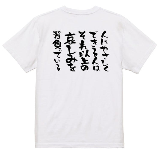 名言系半袖Tシャツ【人にやさしくできる人はそれ以上の悲しみを背負っている】おもしろTシャツ ネタTシャツ
