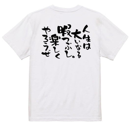 名言系半袖Tシャツ【人生は大いなる暇つぶし。楽しくやろうぜ】おもしろTシャツ ネタTシャツ