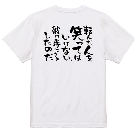 名言系半袖Tシャツ【転んだ人を笑ってはいけない。彼は歩こうとしたのだ】おもしろTシャツ ネタTシャツ