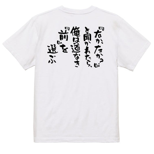 名言系半袖Tシャツ【『右か、左か?』と聞かれたら、俺は道なき『前』を選ぶ】おもしろTシャツ ネタTシャツ