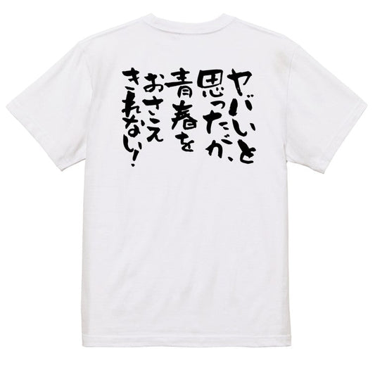 名言系半袖Tシャツ【ヤバいと思ったが、青春をおさえきれない!】おもしろTシャツ ネタTシャツ