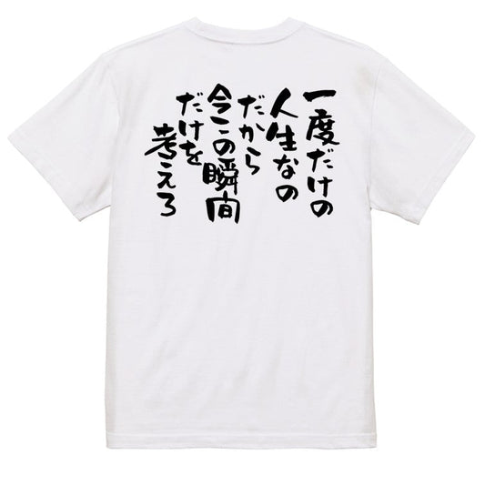 名言系半袖Tシャツ【一度だけの人生なのだから今この瞬間だけを考えろ】おもしろTシャツ ネタTシャツ