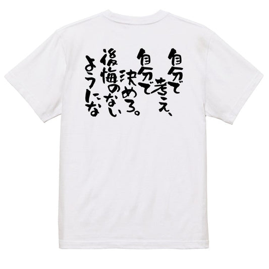 名言系半袖Tシャツ【自分で考え、自分で決めろ。後悔のないようにな】おもしろTシャツ ネタTシャツ