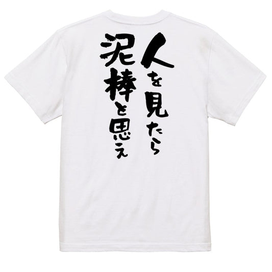 名言系半袖Tシャツ【人を見たら泥棒と思え】おもしろTシャツ ネタTシャツ