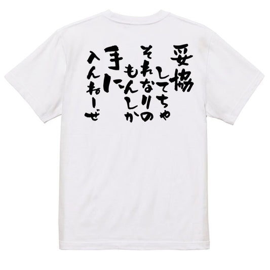 名言系半袖Tシャツ【妥協してちゃそれなりのもんしか手に入んねーぜ】おもしろTシャツ ネタTシャツ