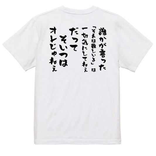 名言系半袖Tシャツ【誰かが言った「それは難しいよ」は一切気にしてねぇだってそいつはオレじゃねぇ】おもしろTシャツ ネタTシャツ