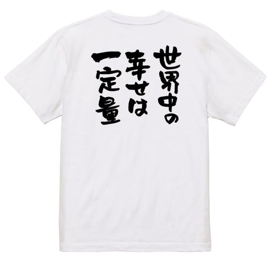 • 名言系半袖Tシャツ【世界中の幸せは一定量】おもしろTシャツ ネタTシャツ