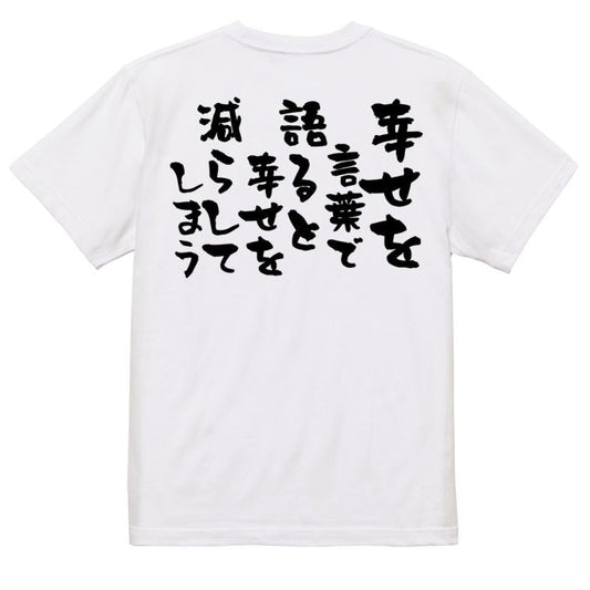 名言系半袖Tシャツ【幸せを言葉で語ると幸せを減らしてしまう】おもしろTシャツ ネタTシャツ
