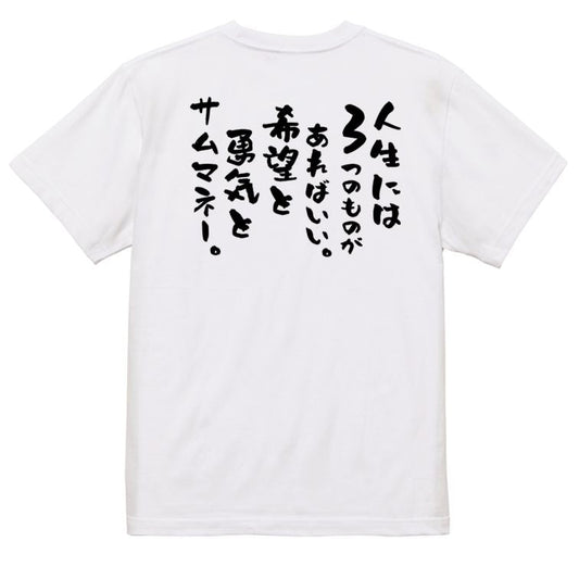 名言系半袖Tシャツ【人生には3つのものがあればいい。希望と勇気とサムマネー。】おもしろTシャツ ネタTシャツ