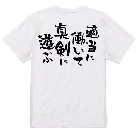 脱力系半袖Tシャツ【適当に働いて真剣に遊ぶ】おもしろTシャツ ネタTシャツ