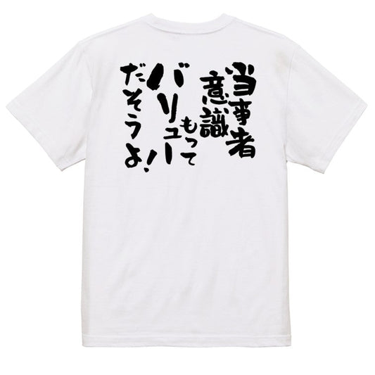 意識高い系半袖Tシャツ【当事者意識もってバリューだそうよ!】おもしろTシャツ ネタTシャツ