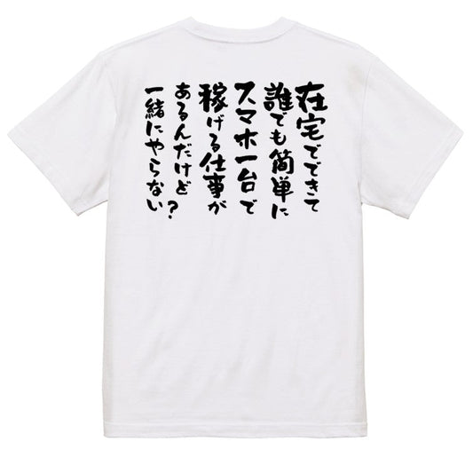 意識高い系半袖Tシャツ【在宅でできて誰でも簡単にスマホ一台で稼げる仕事があるんだけど一緒にやらない?】おもしろTシャツ ネタTシャツ