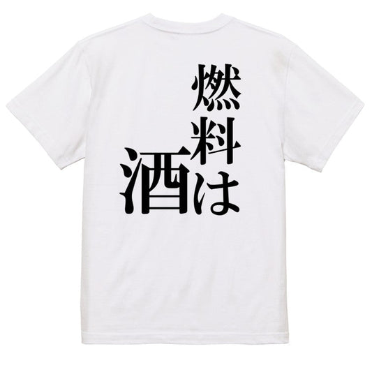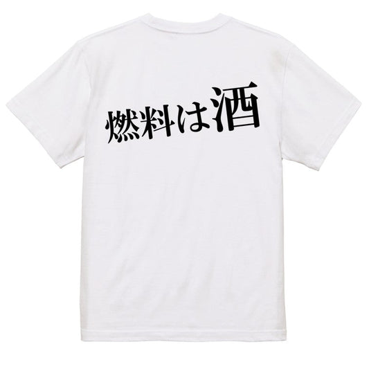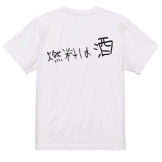 明朝体酒飲み系半袖Tシャツ【燃料は酒(横)(明朝体)】おもしろTシャツ ネタTシャツ