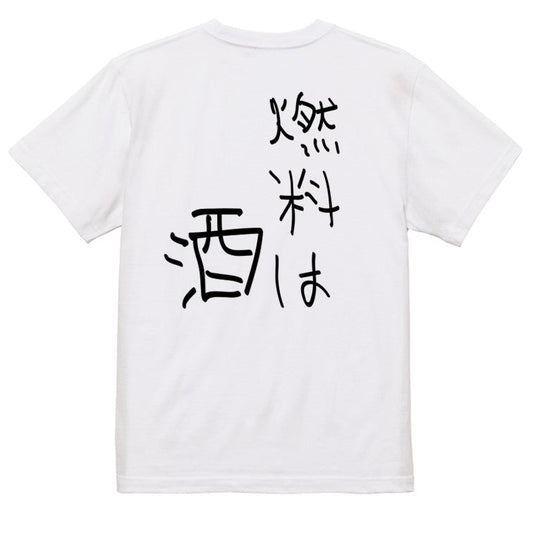 酒飲み系半袖Tシャツ【燃料は酒(横)】おもしろTシャツ ネタTシャツ