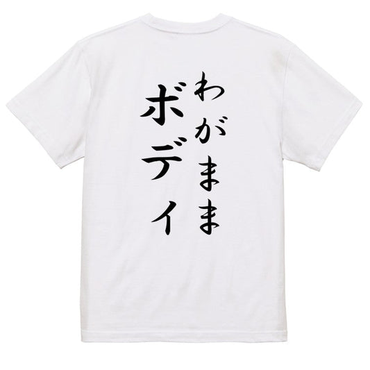筆文字デブ系半袖Tシャツ【わがままボディ(筆文字)】おもしろTシャツ ネタTシャツ