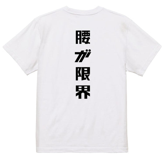 明朝体ネタ系半袖Tシャツ【腰が限界(横)(明朝体)】おもしろTシャツ ネタTシャツ