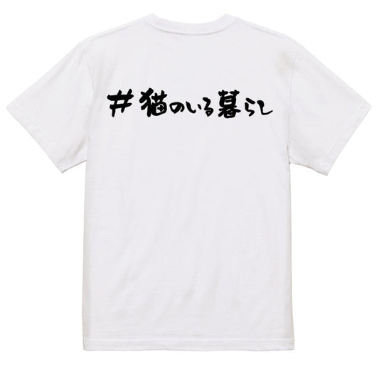 ハッシュタグ系半袖Tシャツ【#猫のいる暮らし】おもしろTシャツ ネタTシャツ