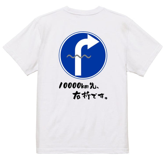 標識系半袖Tシャツ【10000km先、右折です。】おもしろTシャツ ネタTシャツ