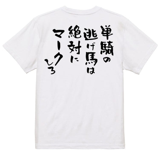 競馬系半袖Tシャツ【単騎の逃げ馬は絶対にマークしろ】おもしろTシャツ ネタTシャツ