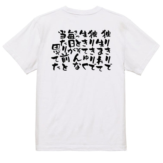 脱力系半袖Tシャツ【独りきりで生まれて独りきりで生きてゆくきっとそんな毎日が当たり前と思ってた】おもしろTシャツ ネタTシャツ